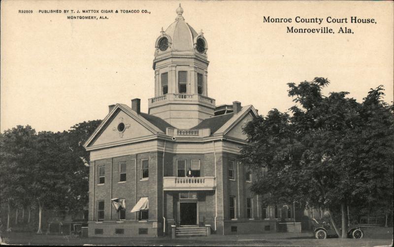 Front: R32809 PUBLISHED BY T. J. MATTOX CIGAR & TOBACCO CO., MONTGOMERY, ALA. *** TALLET Monroe County Court House, Monroeville, Ala, Back: 800 R 32809 THIS SPACE FOR ADDRESS ONLY.