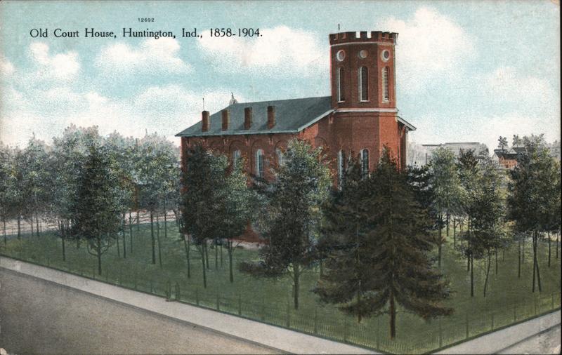 Front: 12692 Old Court House, Huntington, Ind., 1858-1904. ap Palmian Back: MADE IN U. SA PUBLISHED BY THE HUNTINGTON POST CARD CO.. HUNTINGTON, IND.. DOST RD 00 THIS SPACE FOR ADDRESS ONLY