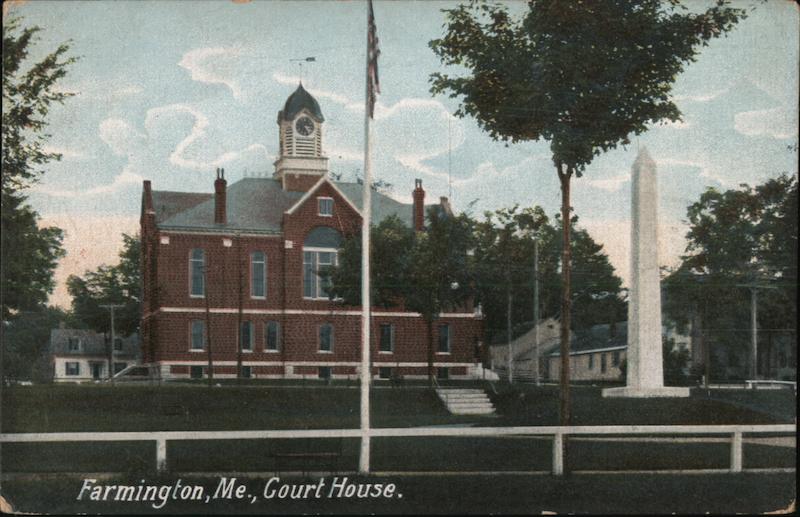 Front: Farmington, Me., Gourt House. 15 Back: THE HUGH C:LEIGHTON CO., MANUFACTURERS, PORTLAND,ME.U.S.A.PRINTED IN FRANKFORT MAIN, GERMANY 5564. Franklin Co. PHIL Mrs. A.B. Austin Bot 258 Morrisville vet