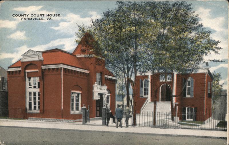 Front: COUNTY COURT HOUSE. FARMVILLE. VA. ATV 17 60 10 Back: 43479 TATION TATTOO Post Gord 60 TWO CENTS