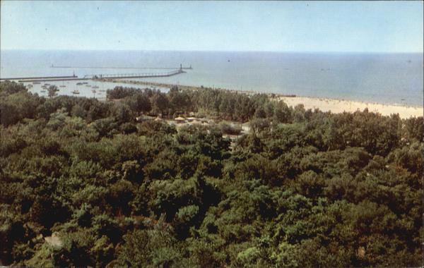 WASHINGTON PARK View from observation tower Michigan City, Indiana Pub. by Harvey's Studio, Box 85, Valparaiso, Indiana Rev. 1-62 5606-B AADE BY WEST HYACK.M.Y. HERE