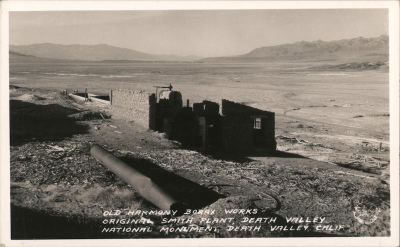Front: OLD HARMONY BORAX WORKS ORIGINAL SMITH PLANT DEATH VALLEY NATIONAL MONUMENT, DEATH VALLEY, CALIF Back: MH 400 Pub. by Frasher's, Inc., Pomona, Calif. TECDF