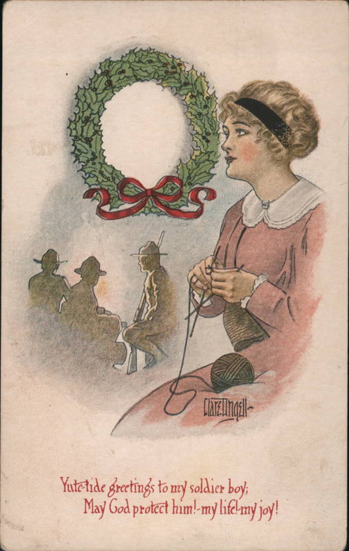 Front: Clarelinaell Yute tide greetings to my soldier boy; May God protect him!-my life! my joy! Back: BAMFORTH & CO., WARREN ST, NEW YORK. SD POST- CARD STAMP