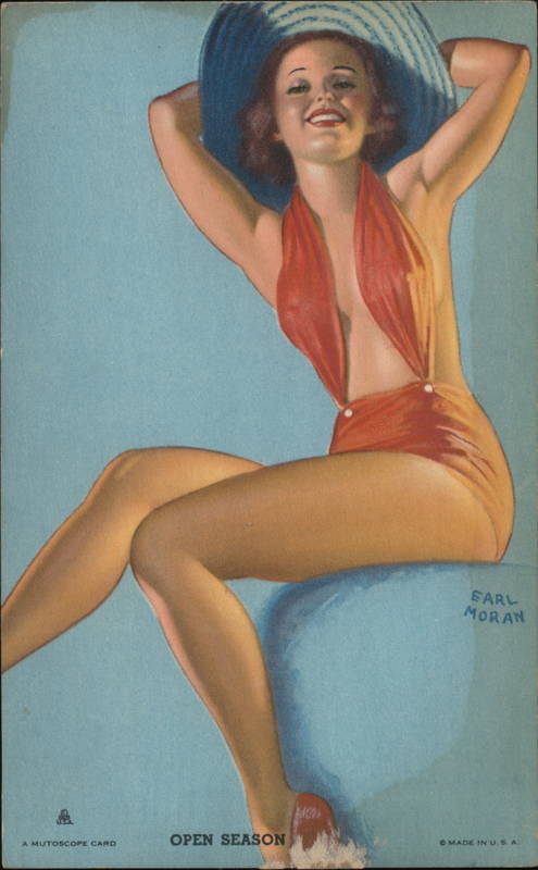 EARL MORAN A MUTOSCOPE CARD OPEN SEASON CMADE IN U.S. A.
