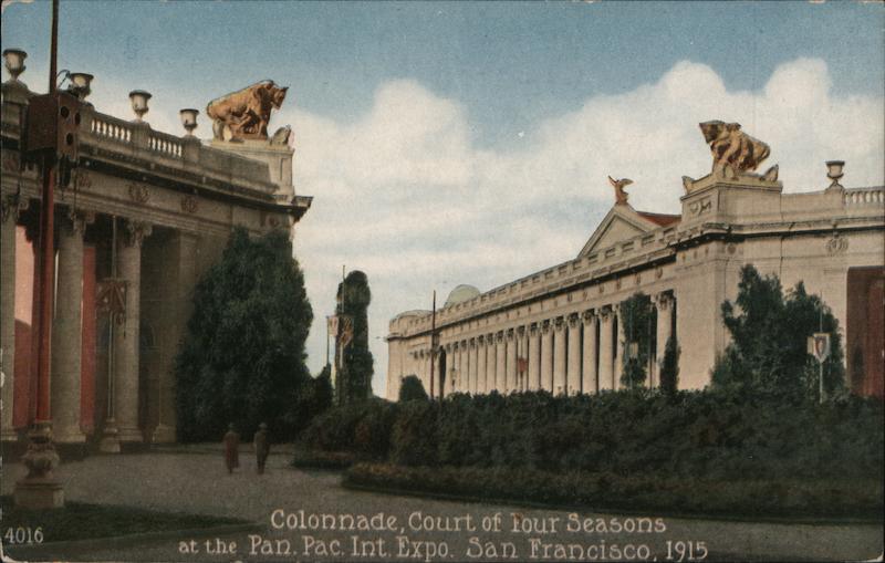 Front: 4016 Colonnade, Court of Four Seasons at the Pan. Pac. Int. Expo. San Francisco, 1915 Back: EDWARD H MITCHELL, PUBLISHER SAN FRANCISCO $1 FOREIGN 2ยข