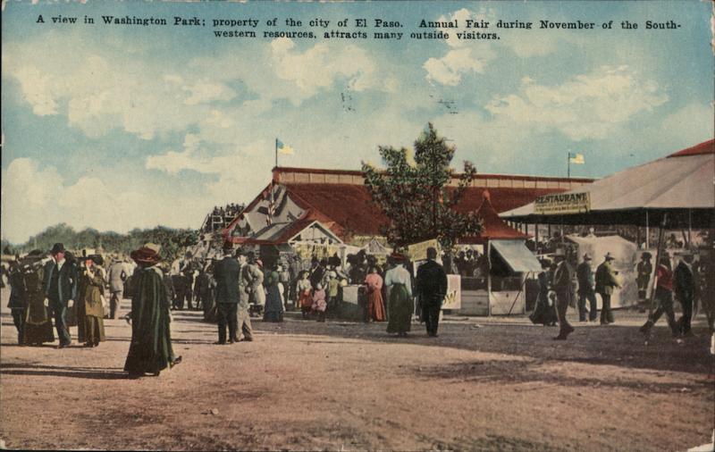 A view in Washington Park; property of the city of El Paso. Annual Fair during November of the South-