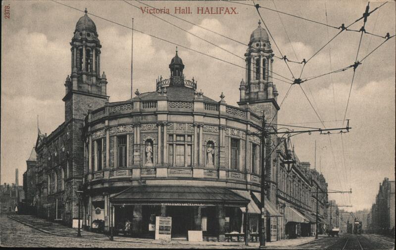 Front: 2378. CONTARY HAL WIE BAR VICTORIA HAL Victoria Hall. HALIFAX. Back: TRADE MARK CARD. Only the if sent Abroad. For INLAND Postage only this space may be used for communication. Printed in Saxony