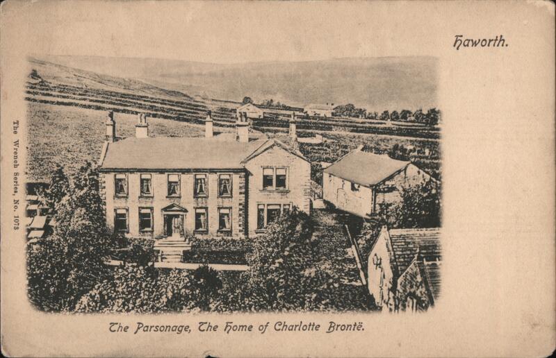 Front: The Wrench Series, No. 1073 11 Haworth. The Parsonage, The Home of Charlotte Brontë. Back: 1/2 d. 1 d. The Wrench Series, No. 1073 Printed in Saxony. WRENCH
