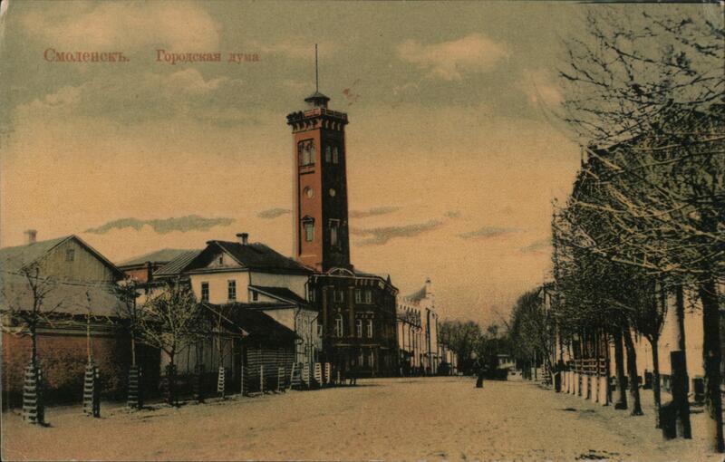 Front: Смоленск. Городская дума # Back: ВСЕМІРНЫЙ ПОЧТОВЫЙ СОЮЗЪ РОССІЯ. INION POSTALE UNIVERSELLE RUSSIE ОТКРЫТОЕ ПИСЬМО. - CARTE POSTALE (для письма) (для адреса) Chromolichtdruck