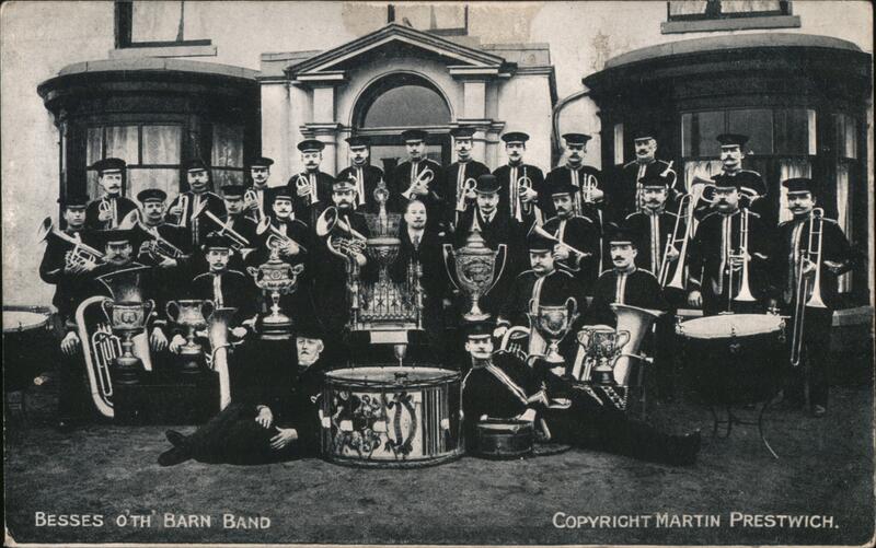 Front: (6) BESSES OTH BARN BAND COPYRIGHT MARTIN PRESTWICH. Back: 500 (FOR INLAND USE ONLY.) THE ADDRESS TO BE HALFPENNY STAMP.