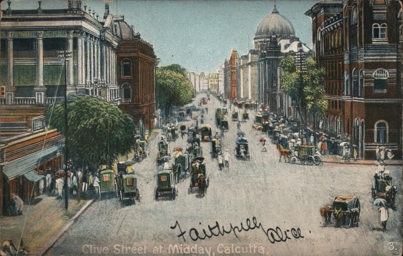 Front: Faithpier Clive Street at Midday, Calcutta lolice. 3. Back: Write Here. India look при meet food Thumping alive. ladie. -Inpo -MP Dickes on m 121 to Pa- Mediapa.