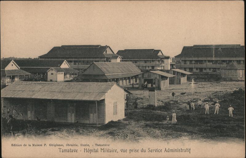 Front: Edition de la Maison P. Ghigiasso, librairie, literie, - Tamatave Tamatave Hôpital Militaire, vue prise du Service Administratif T Back: Tous les Pays étrangers n'acceptent pas la Correspondance au recto. Se renseigner à la Poste ADRESSE