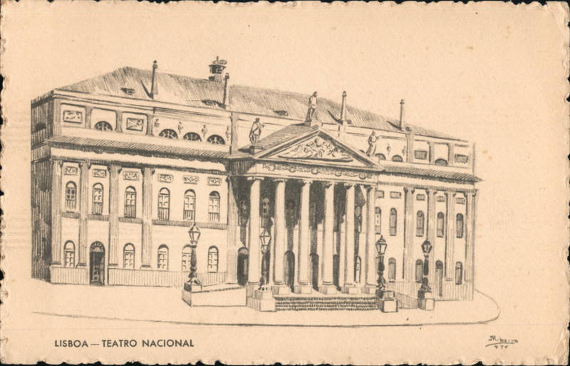 Front: LISBOA TEATRO NACIONAL LL 12 EFED 978 Back: CORREIO TUDO PELA NACAO PORTUGAL BILHETE POSTAL ILUSTRADO CORRESPONDENCIA 400.- DIRECÇÃO (Custo, incluindo a franquia: $50) EDIÇÃO SCIAL