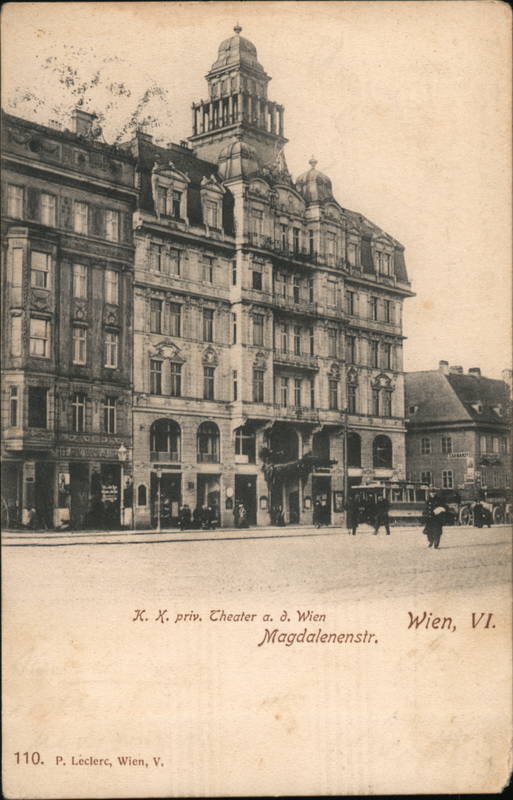 Front: E PORA COCITAL UK K. K. priv. Cheater a. d. Wien Wien, VI. Magdalenenstr. 110. P. Leclerc, Wien, V. Back: An SZEW Correspondenz-Karte. BAGS Jundiges Kardeine 32 TERR Telitra Jawansely in. Preuttamas ungarn. áž“