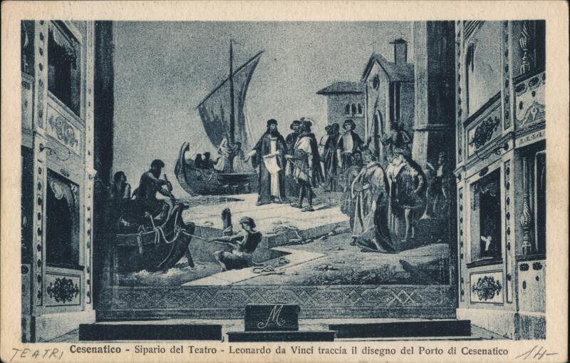 Cesenatico - Sipario del Teatro - Leonardo da Vinci traccia il disegno del Porto di Cesenatico -