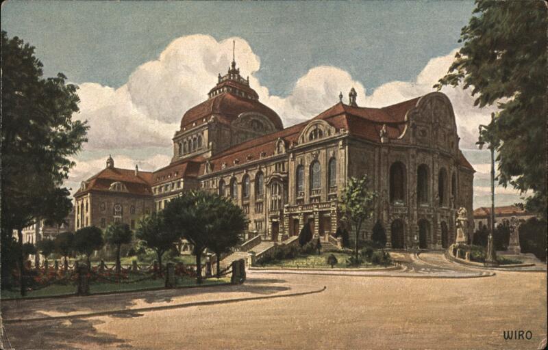 Front: กศ WIRO Back: KÜNSTLER-KARTE,,WIRO" SERIE FREIBURG Nr. 2712 A. Ges. geschützt! C. F. Wiedemann, Hoflieferant, Roda S.-A. Freiburg, Theater. POSTKARTE
