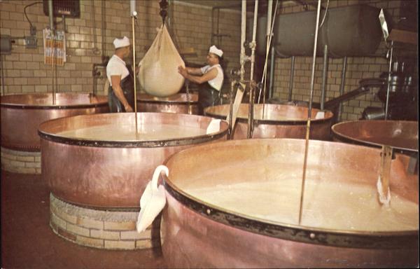 Factory view of dipping curd from a copper