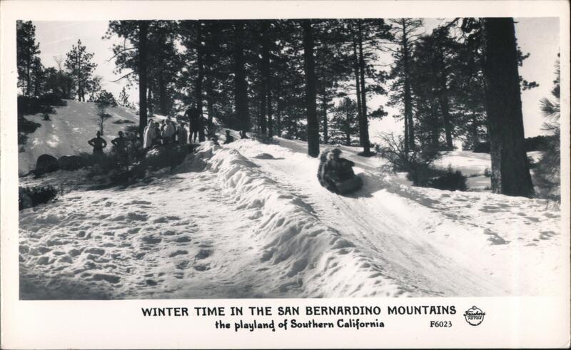 Front: WINTER TIME IN THE SAN BERNARDINO MOUNTAINS the playland of Southern California F6023 Frashers INCORPORATED FOTOS Back: PUBLISHED BY FRASHERS, INC., POMONA, CALIF. EK-