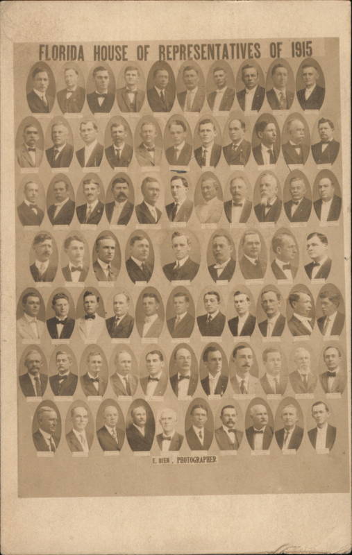 Front: FLORIDA HOUSE OF REPRESENTATIVES OF 1915 0298099900 SODAS 20 03 89999999938 E. BIEN, PHOTOGRAPHER Back: AA A 20 = STAMP = <NO' HERE 0 AAZO A 84.44.1
