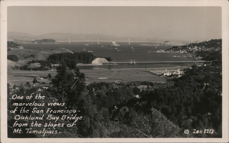 Front: One of the marvelous views of the San Francisco- Oakland Bay Bridge from the slopes of Mt. Tamalpais. © Zan 1213 Back: 4K-T GENUINE PHOTOGRAPH by Zan of Tamalpais 34 5-