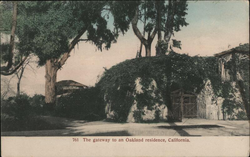 Front: 761 The gateway to an Oakland residence, California. Back: PUBLISHED BY CARDINELL-VINCENT Co. (MADE IN GERMANY) OAKLAND LOS ANGELES. 1 c Possessions, Canada, Mexico, 2 c (PRINTED IN GERMANY) THIS SPACE MAY BE USED FOR COMMUNICATION