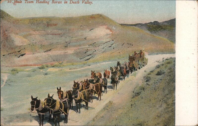 Front: 20. Mule Team Hauling Borax in Death Valley. Back: Ow 10- Rosin & Co, Phila, & New York. Made in Germany. 829.