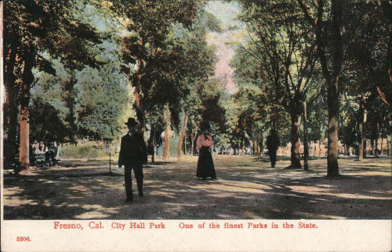 Front: 5206. Fresno, Cal. City Hall Park One of the finest Parks in the State. Back: COMMUNICATIONS PCK 1c. for 2 c. for abroad