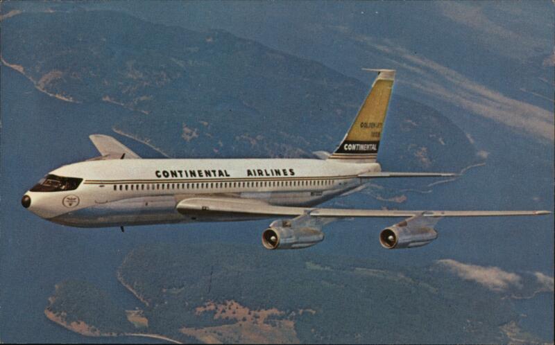 Front: CONTINENTAL AIRLINES COLON CONTINENTAL Back: CONTINENTAL NEW 720B FAN JETS join Continental's growing Golden Jet fleet offering the ultimate in speed, comfort and dependability. VIA AIR MAIL CS-22 100M 4/64