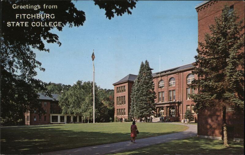 Front: Greetings from FITCHBURG STATE COLLEGE Back: H-1 YANKEE FITCHBURG STATE COLLEGE Fitchburg, Massachusetts COLOUR 1963 Yankee Colour Corp., Southboro, Mass. Yankee Colour photograph by Roger Maconi C-24337 HERE