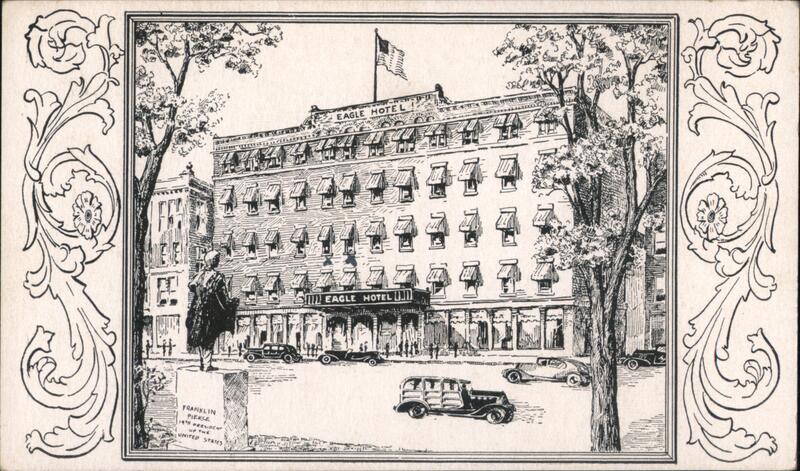 Front: MEE FRANKLIN PIERCE 14TH PRESIDENT OF THE EAGLE HOTEL TETEME EAGLE HOTEL THU Back: EAGLE HOTEL CONCORD, NEW HAMPSHIRE New Hampshire's Most Historic Hotel THIS SPACE FOR ADDRESS