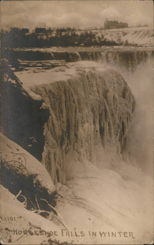Front: No.101 HORSESHOE FALLS IN WINTER Back: Niagara Falla from a 1900 album AAZOA = STAMP = SO HERE AAZO A NAME AND ADDRESS HERE