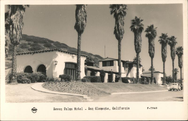 Front: 11 Seven Palms Motel - San Clemente, Galifornia F-7940 Back: 2. Tashers Foto Card Scenic Photos of the West PUBLISHED BY FRASHERS INC POMONA CALIF.