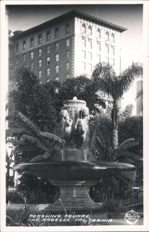 Front: 1111 ㅋㅋ 11 PERSHING SQUARE LOS ANGELES, CALIFORNIA Frashers FOTDS CALE MA Back: POST CA EK DESERT SOUVENIR SUPPLY, BOULDER CITY, NEVADA