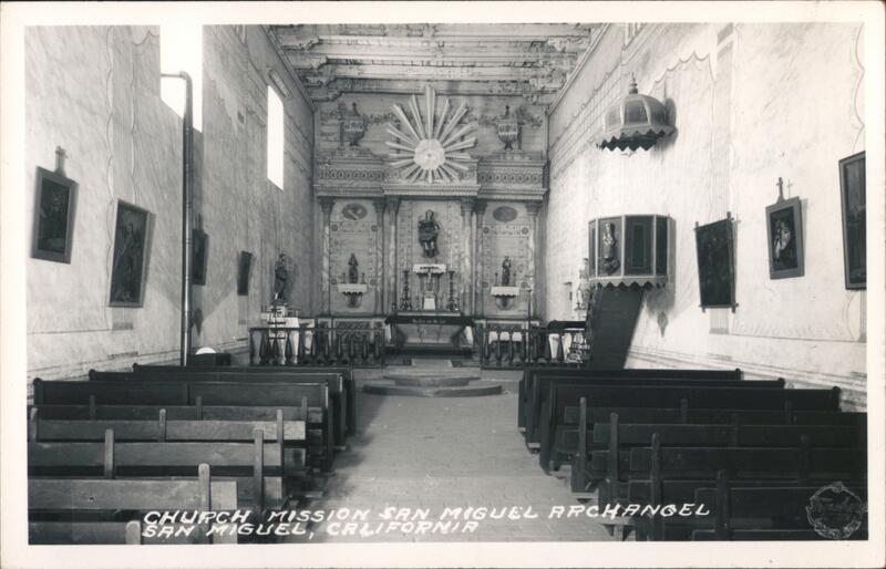 Front: My God and My All CHURCH MISSION SAN MIGUEL ARCHANGEL SAN MIGUEL, CRLIFORNIA Back: #44 PUBLISHED BY FRASHERS, INC., POMONA, CALIF. EK