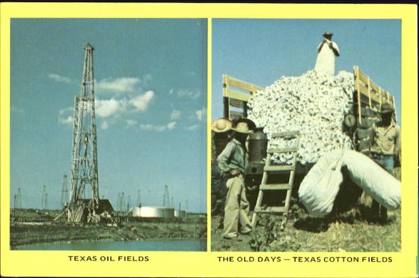 Front: TEXAS OIL FIELDS THE OLD DAYS - TEXAS COTTON FIELDS Back: T-89 .Dist. by A-W Distributors, P.O. Box 5167, Irving, Texas 75062. 32885-2