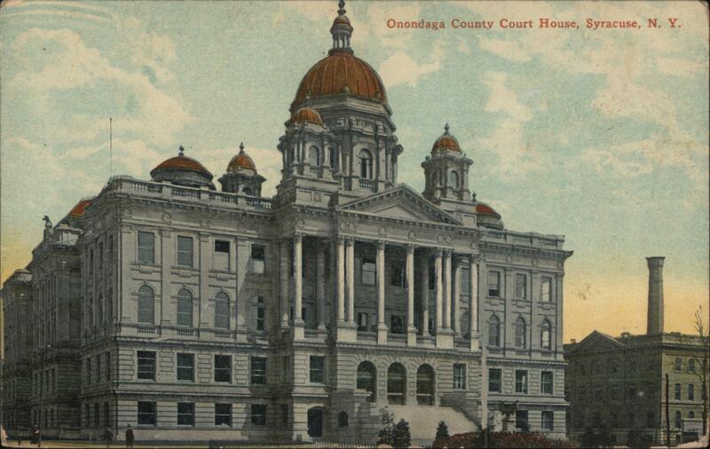 Front: Onondaga County Court House, Syracuse, N. Y. Back: 215 Pub. by the Syracuse News Company, Syracuse, N. Y. HROME LEIPZIG BERLIN NEW YORK- Registered CONE CENT. TWO CENTS