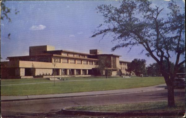 This "Living Memorial" to the Texas A. & M. men who gave their lives for their country during World Wars I & II, was opened in 1950. It serves the college community as a social and cultural center, providing the means to a balanced education. Low and rambling, built of shell stone and brick, it is over a block long across the front and includes food services, guest rooms, bowling alleys, a table tennis room, gift shop, barber shop, U. S. Post office, exhibit rooms, dance floors, browsing library, record-playing room, game room, meeting rooms, art room, dark rooms, crafts shop, lounges, and offices of the Former Students Association. |