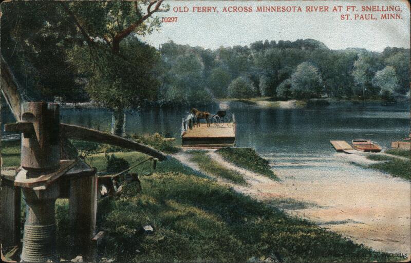 Front: OLD FERRY, ACROSS MINNESOTA RIVER AT FT. SNELLING, 10297 ST. PAUL, MINN. INGERSOLLS Back: Made in Germany. A. C. Bosselman & Co., New York. Dost Card. 350 One Cent for United States, and Island Possessions, Cuba, Canada and For Foreign.
