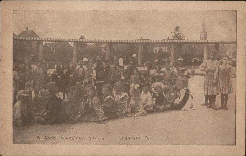 Front: A GOOD ATURED CROWO SheRMAN PARK. Back: (Space below may be used for writing) Miss. Edith Grissom Imon City Inda P.D* 38. Box #94