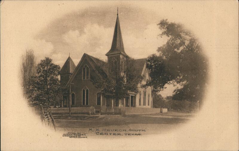 Front: PUBL BY JOHN C. ROGERS DRUGGIST & STATIONER ME CHURCH, SOUTH. CENTER, TEXAS. Back: 10- DOMESTIC, 1c. FOREIGN, 2c. THE ALBERTYPE CO BROOKLYN, N. Y.