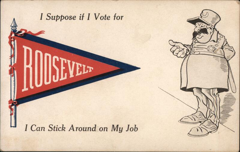 Front: I Suppose if I Vote for ROOSEV I Can Stick Around on My Job Back: AND CANA A FOREIGN TWO CENTS