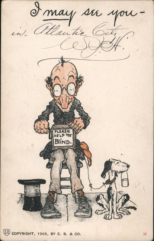 Front: I may sre you- in Atlantic City PLEASE. HELP THE BliND. E.B. &CO COPYRIGHT, 1905, BY E. B. & CO. 13 Back: blind DOMESTIC: FOREIGN: Mike Male Combe He Soberside Hotel Atlantic Cit n.J. -el