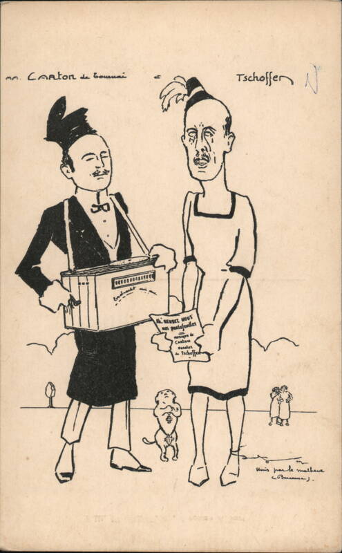 Front: M. Canton de bournai Tschoffen A Endracht A RENBEZ NOUS Portefeuilles CARTON Paneles de Tscheffe unis par le malheur (Because). Back: Edit. FLOBĂRE, 49, Avenue Albert 20.