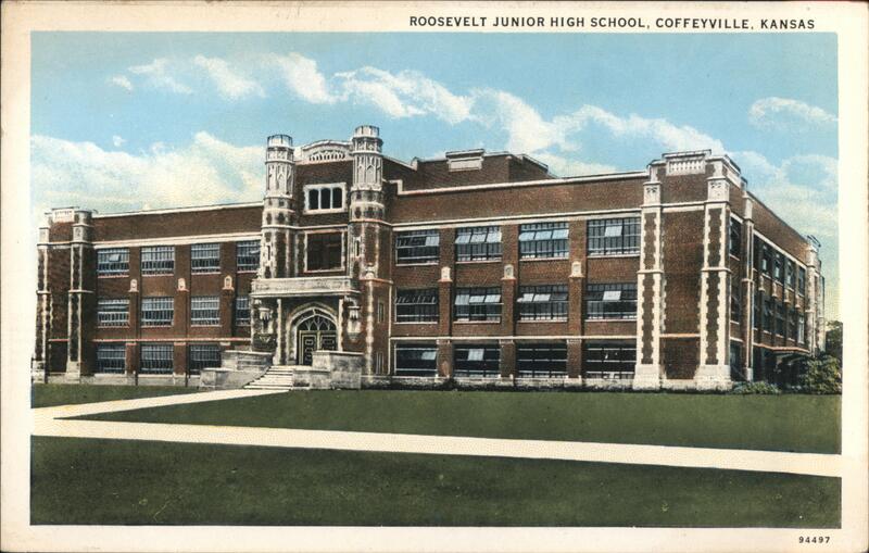 Front: ROOSEVELT JUNIOR HIGH SCHOOL, COFFEYVILLE, KANSAS 000 94497 Back: 2/2- MADE BY CURT TEICH & CO., INC., CHICAGO, U. S. A. CHICAGO