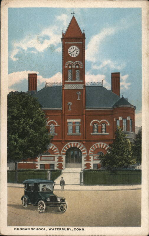 Front: elopst of ot 01 DUGGAN SCHOOL, WATERBURY, CONN. Back: PUBLISHED BY MORRIS BERMAN, NEW HAVEN, CONN. QUALITY A-72105 POST MB CARD SERVICE and Island Possessions Cuba, Canada and For foreign. C. T. AMERICAN ART
