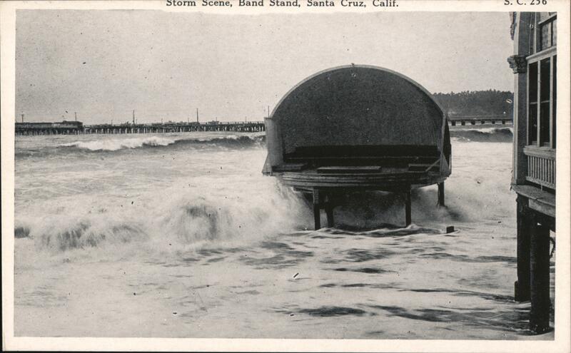 Front: Storm Scene, Band Stand, Santa Cruz, Calif. Back: PACIFIC NOVELTY CO. SAN FRANCISCO & LOS ANGELES ང་ STAMP