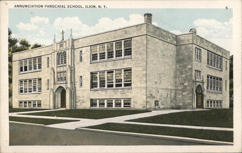 Front: ANNUNCIATION PAROCHIAL SCHOOL, ILION. N. Y. 5 Back: PUB. BY WALTER PFEIFER, UTICA, N. Y. MFD BY ASS 134278 00 00 QUALITY VIEWS