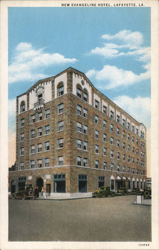 Front: NEW EVANGELINE HOTEL, LAFAYETTE, LA. נו 111110 LEO 123743 Back: MADE BY CURT TEICH & CO., INC., CHICAGO, U. S. A. CHICAGO