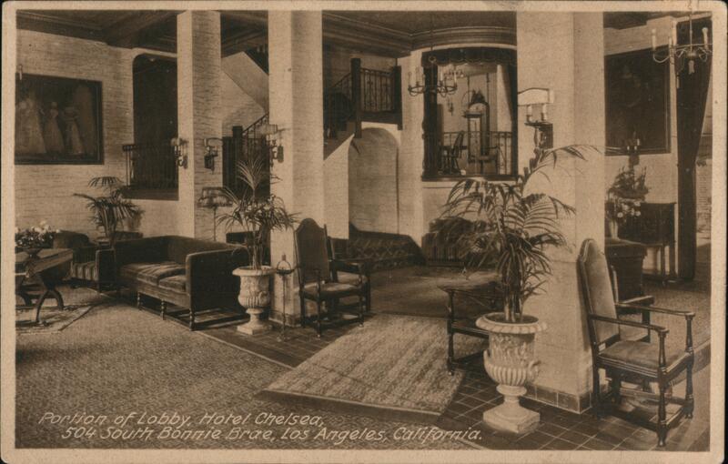 Front: Portion of Lobby, Hotel Chelsea 504 South Bonnie Brae, Los Angeles, California. Back: The hotel where wh d 40964 Bo Printed in Saxony.