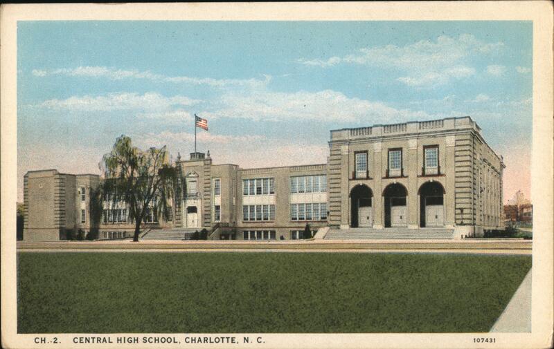 Front: CH.-2. CENTRAL HIGH SCHOOL, CHARLOTTE, N. C. 107431 Back: PUBLISHED BY SOUTHERN POST CARD CO., ASHEVILLE, N. C. SOUTHERN QUALITY COMPANY ASHEVILLE NC. C. T. AMERICAN ART COLORED SMICAGO 20 HERE